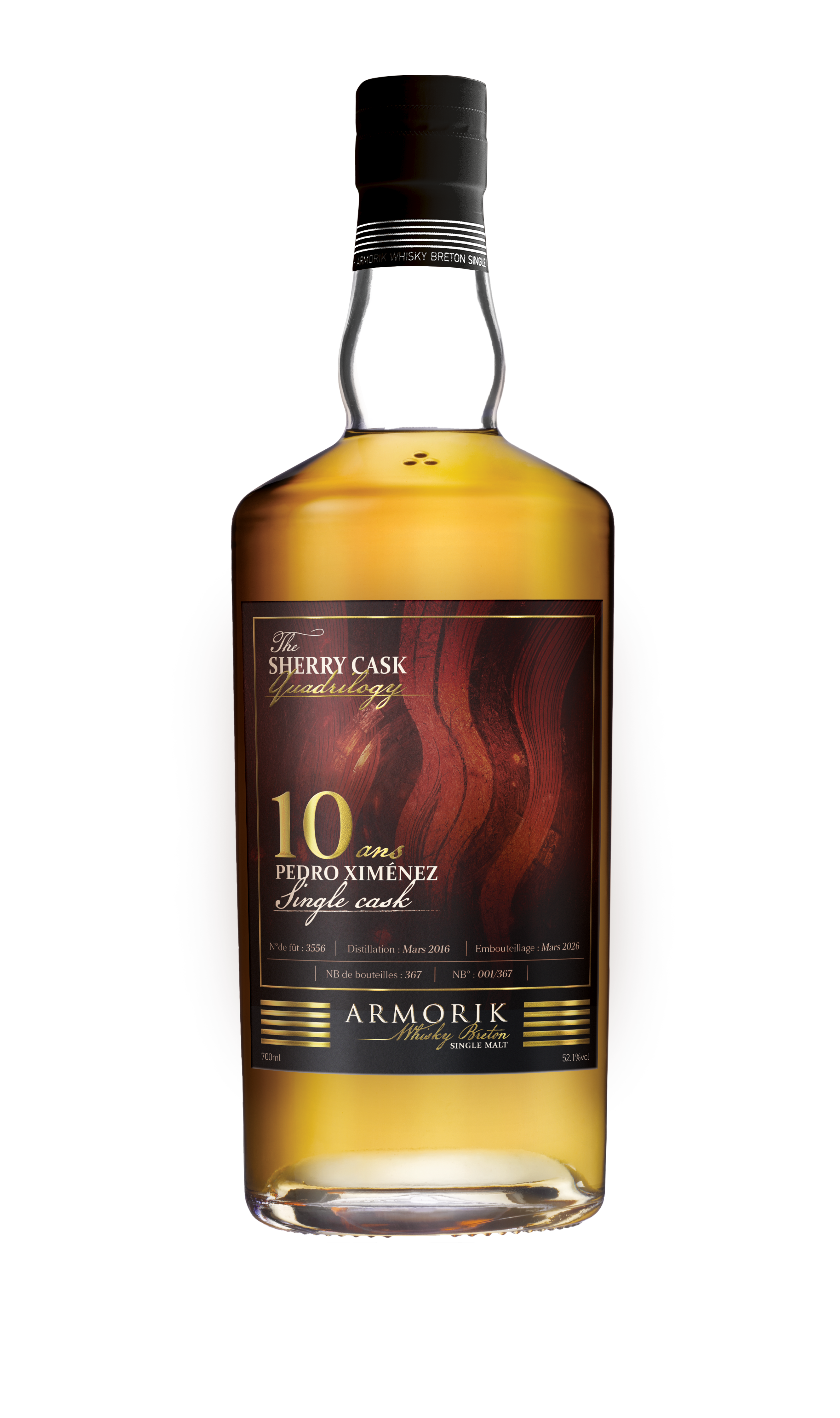 Avec “The Sherry Cask Quadrilogy”, Armorik dévoile une collection d’exception réunissant quatre single casks de 10 ans d’âge, tous vieillis en fûts de Sherry. À travers cette série inédite, la distillerie poursuit son travail d’exploration et d’innovation autour du vieillissement, en étudiant l’influence de quatre grands styles de Sherry — Fino, Palo Cortado, Oloroso et Pedro Ximénez — sur l’expression du whisky. Pensée comme une véritable recherche sensorielle, cette collection met en lumière la précision du savoir-faire d’Armorik et révèle, pour chaque fût, une lecture singulière du terroir breton. Une création rare, au croisement de l’expérimentation, de l’exigence de dégustation et de l’empreinte du bois.